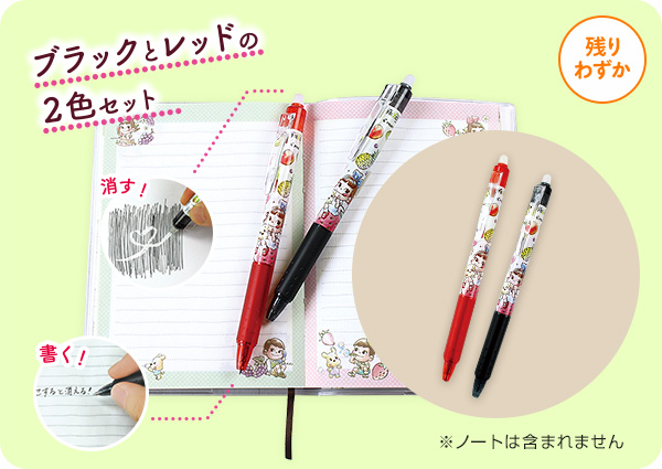 こするとインキが透明に!何度でも書き消しできる便利なペン。ブラックとレッドの2色セット。