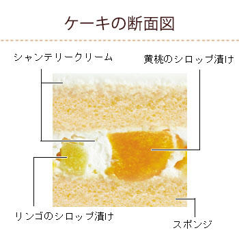 黄桃・リンゴのシロップ漬けとシャンテリークリームをサンドしたスポンジに苺、七五三チョコプレートと栗ローソクを飾りました。