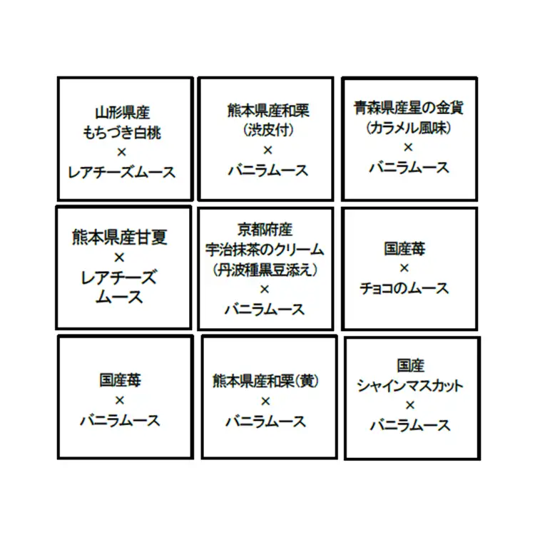 こだわり素材を贅沢に飾った彩り豊かなムースケーキのアソートです。取り分けて楽しい、家族団らんのひとときを彩るお正月の時期ならではのスイーツ。ご予約のみの数量限定商品です。