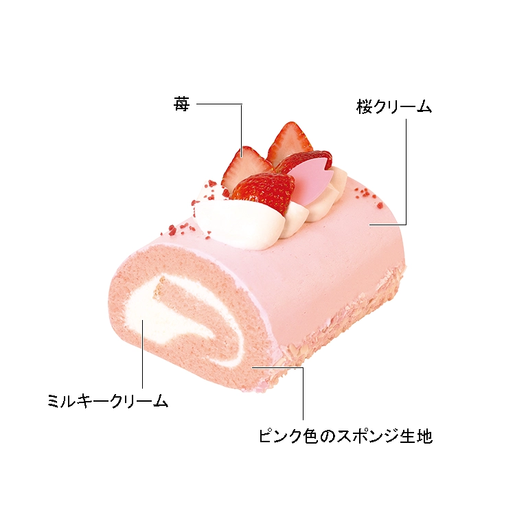 ピンク色のスポンジ生地で、乳味豊かな味わいのミルキークリームを巻き、桜クリームで春らしい色合いに仕上げました。家族や友人とシェアして楽しむのにもぴったりです。