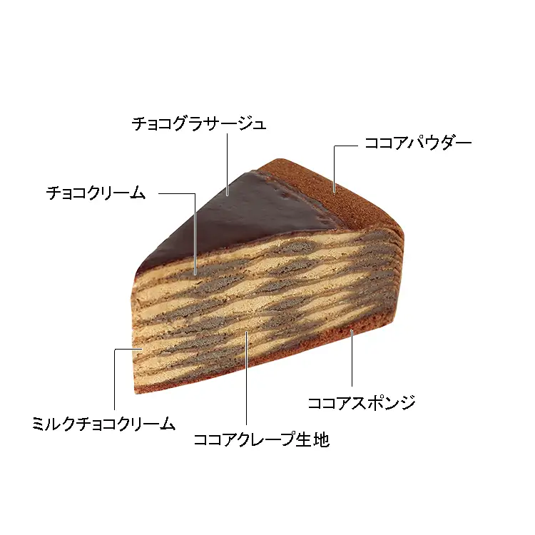 チョコクリームとミルクチョコクリームをココアクレープ生地でアーガイル模様に重ねました。