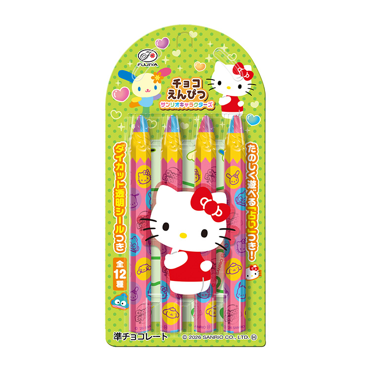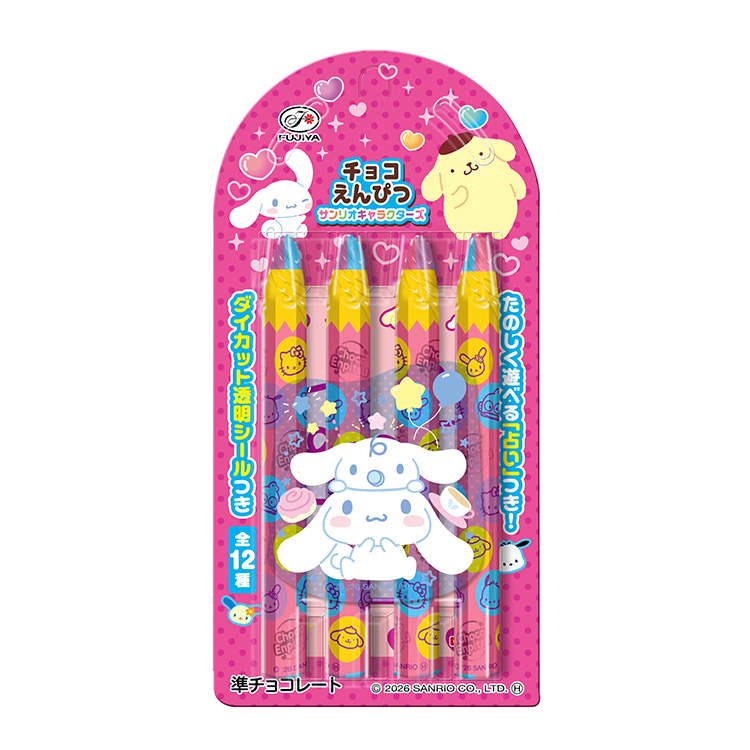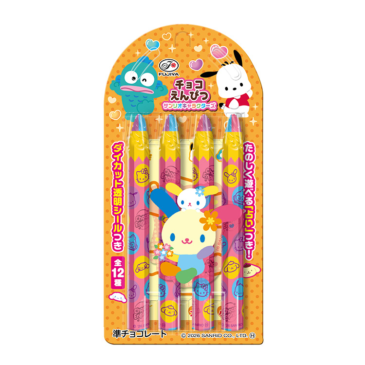 ダイカット透明シールが1枚入った、楽しい要素盛りだくさんのえんぴつ型チョコレートです♪